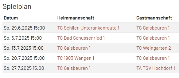 Die U9-Kleinfeld-Kids des TC Gaisbeuren (in der Spielgemeinschaft zusammen mit dem TC Bad Waldsee und der TASV Haisterkirch) gewannen ihr erstes Spiel gegen Mengen mit 16:12. Das Spiel gegen den TC Bad Schussenried ging